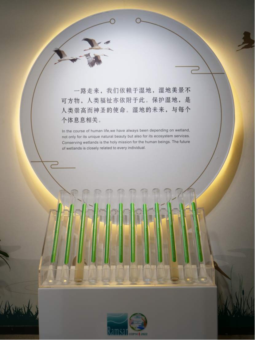 湿地的未来,与每个个体息息相关。在湿地大会期间,大会执委办发起“取水汇水”活动,从全国64个国际重要湿地中选择12处国际重要湿地取水,在成就展揭幕仪式上,由中外嘉宾共同汇入武汉东湖湿地,寓意汇聚全球湿地保护力量、凝聚生态保护共识。