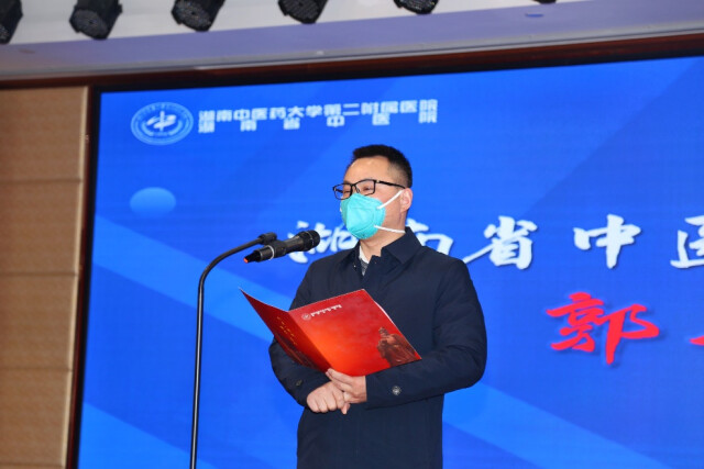 湖南省中医药管理局局长郭子华、国医大师孙光荣教授通过视频方式为大会致辞。湖南中医药大学第二附属医院(湖南省中医院)党委书记杨声辉、纪委书记杨彤、副院长游柏稳出席。大会由医院党委副书记、院长王国佐主持。