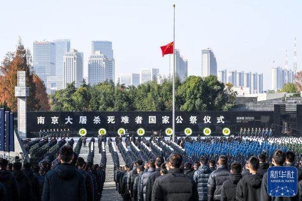 )这是12月13日拍摄的南京大屠杀死难者国家公祭仪式现场。新华社记者 李博 摄)