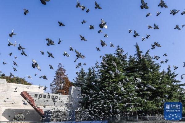 (12月13日,南京大屠杀死难者国家公祭仪式现场放飞和平鸽。 新华社记者 李博 摄)