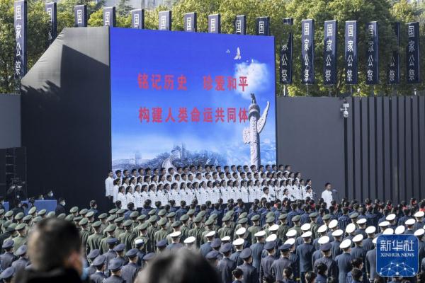 (这是12月13日拍摄的南京大屠杀死难者国家公祭仪式现场。新华社记者 李博 摄)