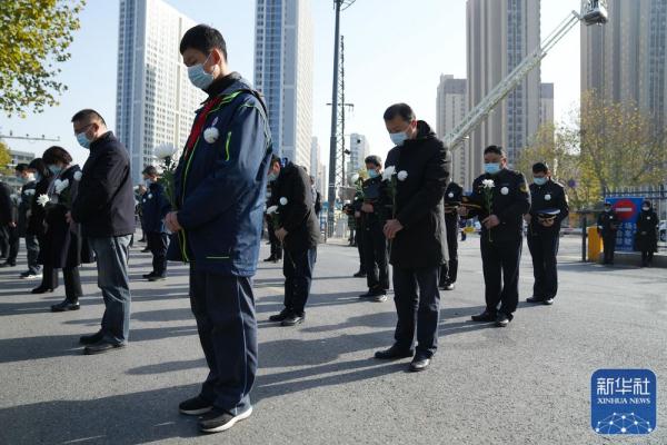 (这是12月13日拍摄的南京大屠杀死难者国家公祭仪式现场默哀。新华社记者 李博 摄)