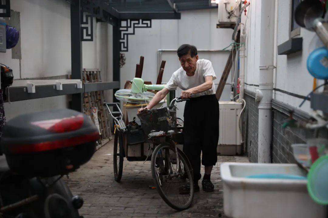 2022年9月8日,王坤森推着三轮车走在巷道上。
