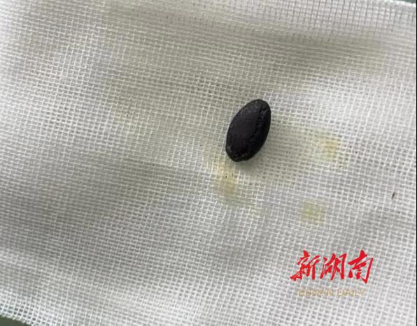 呼救声来自小浩浩的妈妈。小浩浩误呛西瓜子后突然出现剧烈呛咳,呼吸急促、声嘶喉鸣,该院耳鼻咽喉—头颈外科医师紧急在全麻下为浩浩实施了支气管镜检加异物取出术,在气管内取出大小约0.5cm×0.4cm×0.4cm的完整西瓜子。