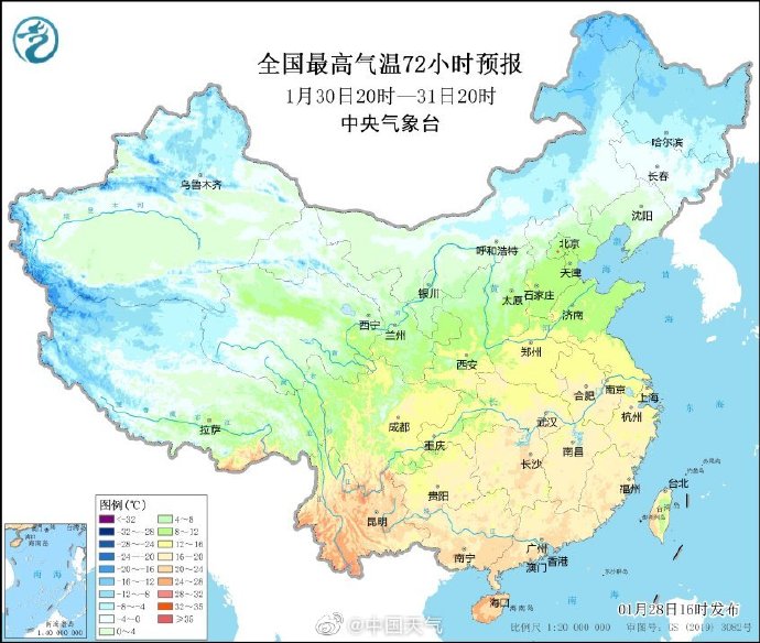 到1月31日,最高气温0℃线会北抬至内蒙古西南部、华北北部到辽宁西部一线;最高气温10℃线会从目前的陕西南部、湖北北部、江西中部一带北抬到陕西中部、山西中部到河北中南部一线,江南、江汉、江淮、华南等地部分地区最高气温更是将上升到20℃左右。而在西藏东部、云南西部、四川西部、青海东南部、湖北西南部、河南北部、河北南部等地的个别地方,气温有可能会创出历史同期的最高值。
