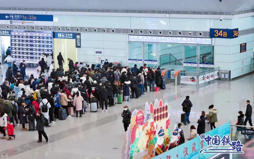 1月24日,西安北站等待检票的旅客。中国铁路 图