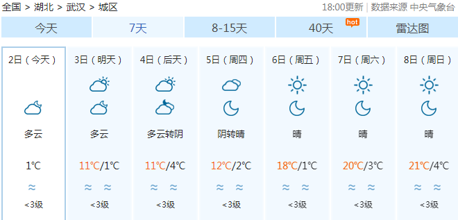 武汉、合肥8日最高气温或分别达21℃、18℃