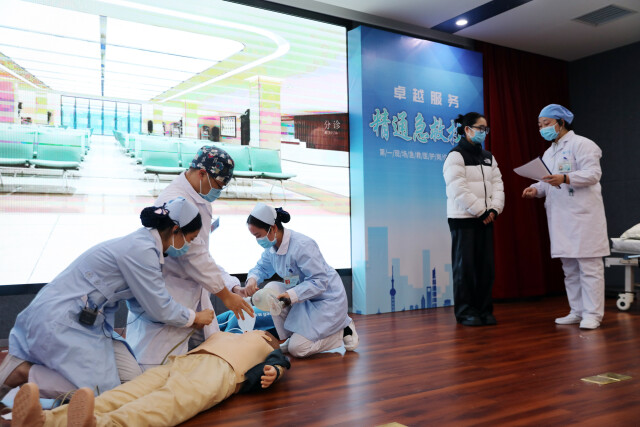据了解,本次医护急救岗位技能竞赛设置了患者突发大咯血窒息、患者就诊时突发心脏骤停、患者在静脉输液时发生药物过敏性休克、患者突发剧烈腹痛疑似穿孔等8个急救技能竞赛项目。来自全院各临床医技科室的47名医护人员分成8组进行比拼,通过模拟不同情景环境,综合考察各岗位医护人员的急救理论知识、应急救治水平、技能操作水平以及临床思维能力。