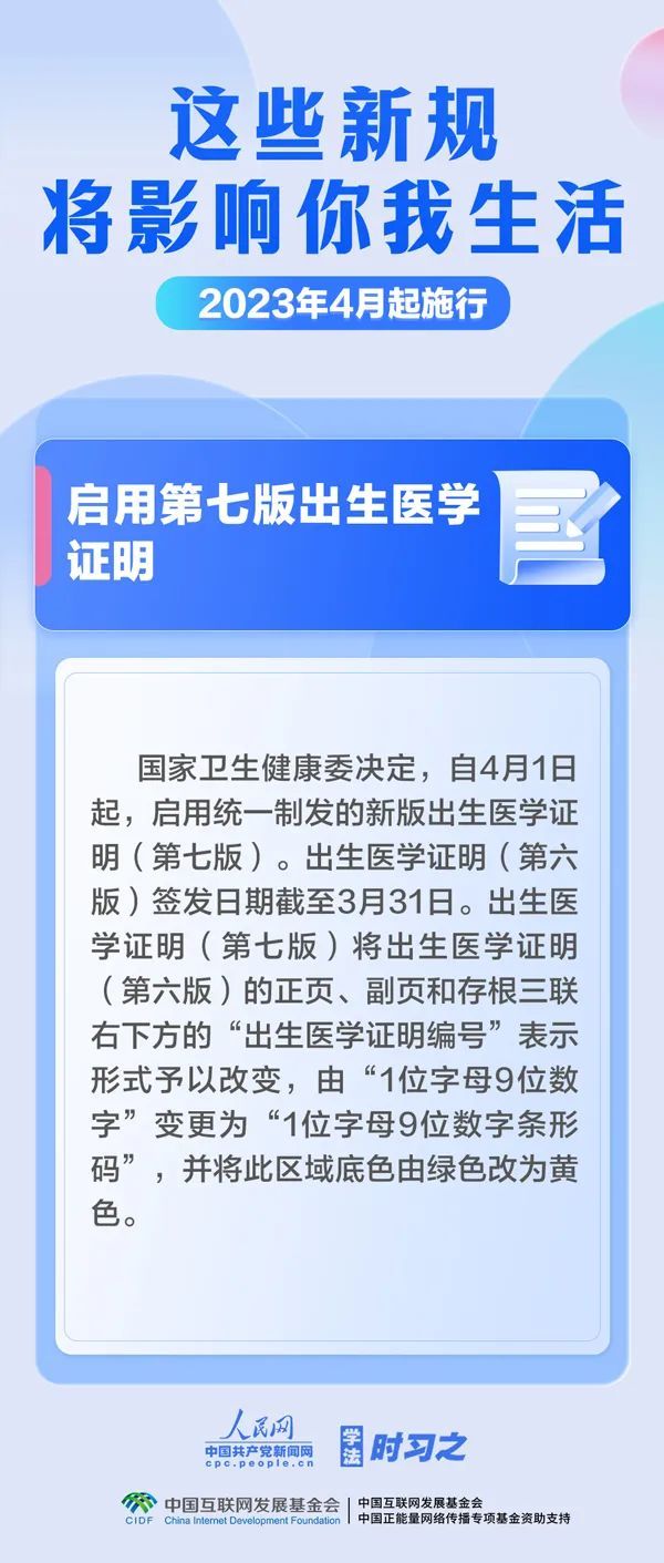 启用第七版出生医学证明