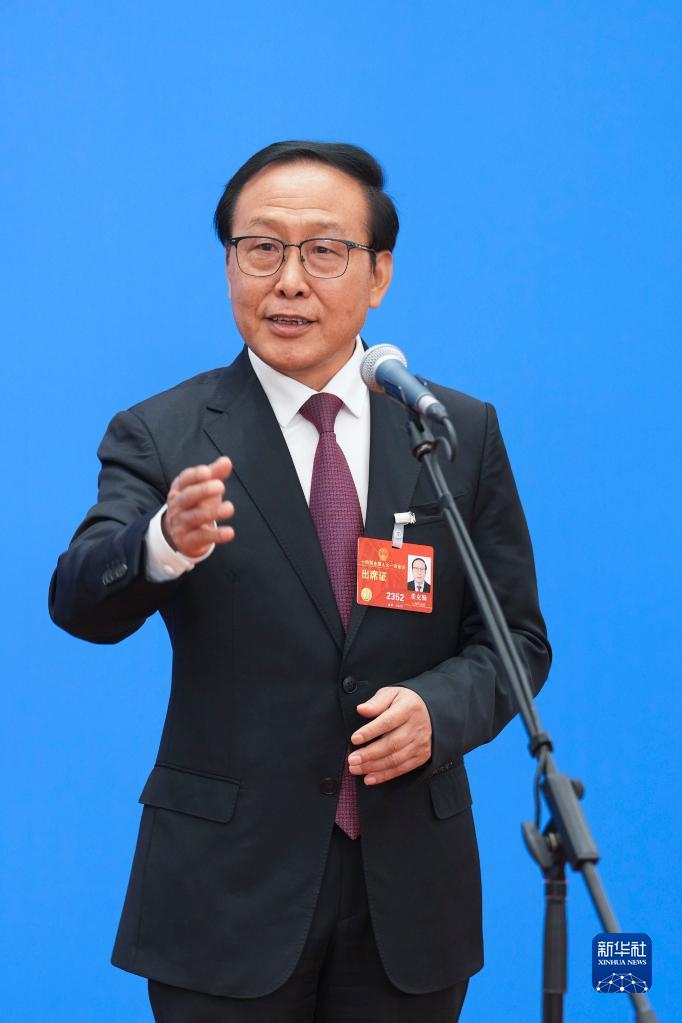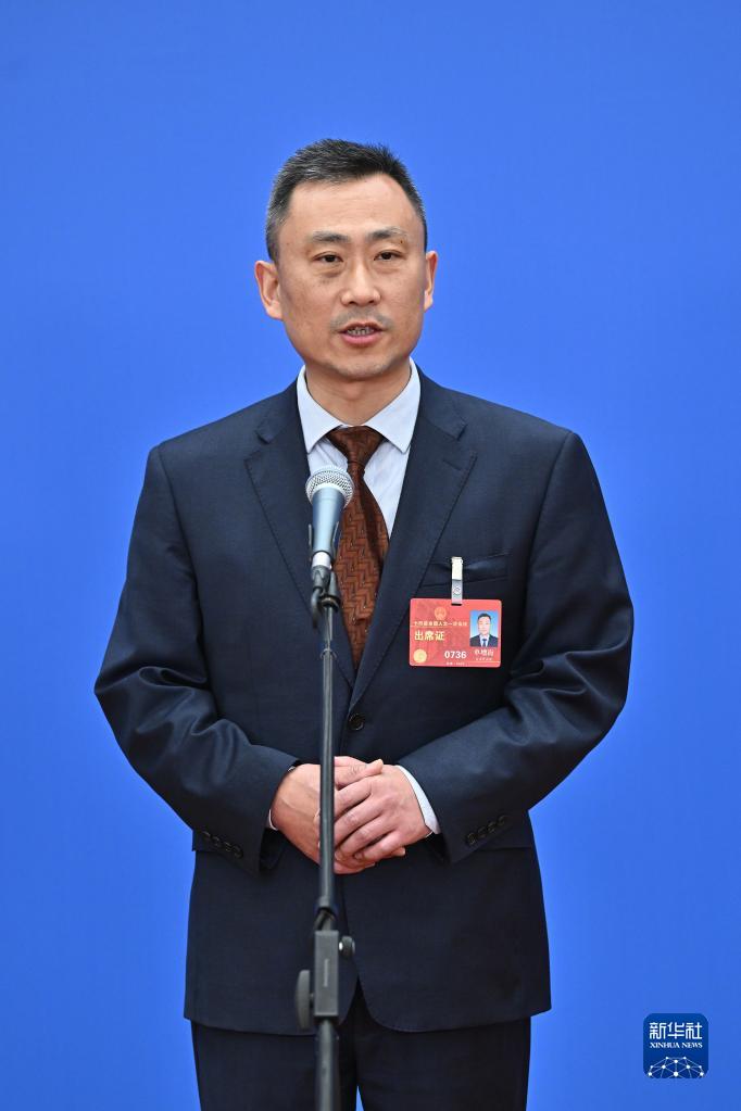 3月5日,第十四届全国人民代表大会第一次会议举行首场“代表通道”采访活动。这是全国人大代表汪玉成接受媒体采访。