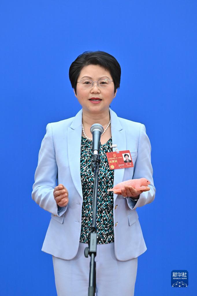 3月5日,第十四届全国人民代表大会第一次会议举行首场“代表通道”采访活动。这是全国人大代表水庆霞接受媒体采访。