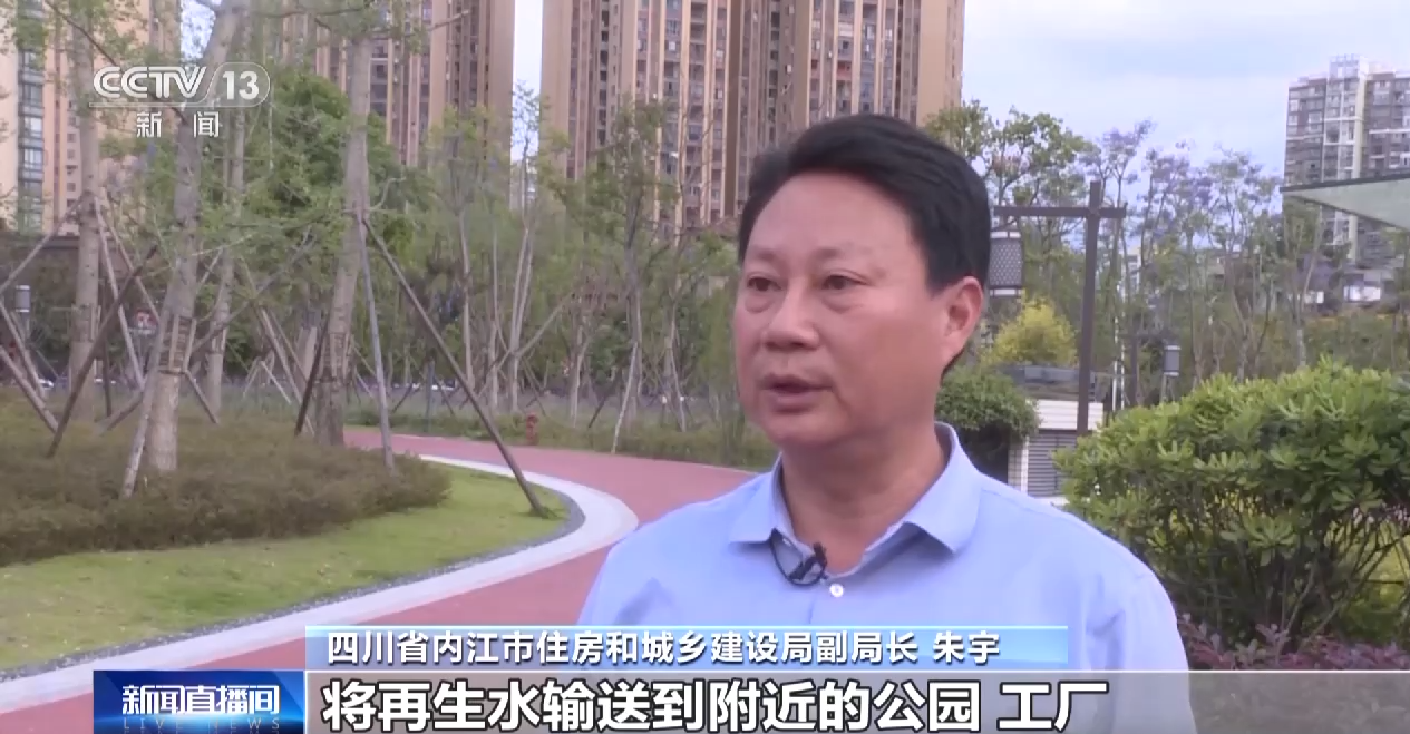 四川省内江市住房和城乡建设局副局长 朱宇:下一步,我们将继续铺设管道,将再生水输送到附近的公园、工厂,用于冲厕、绿化和工业生产,在2025年将内江市的再生水利用率提高到37%。