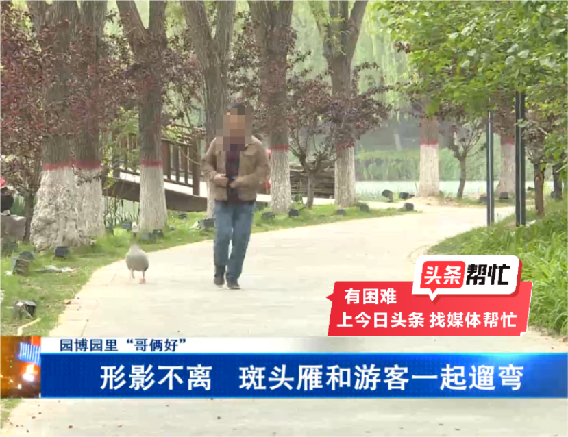 市民和斑头雁遛弯成“哥俩好”,事发时打了游客,目前已调解