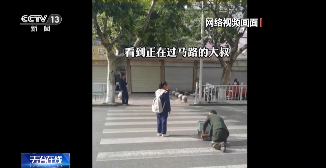 云南大理,车水马龙中停下脚步护送残障叔叔过马路的善良女孩。