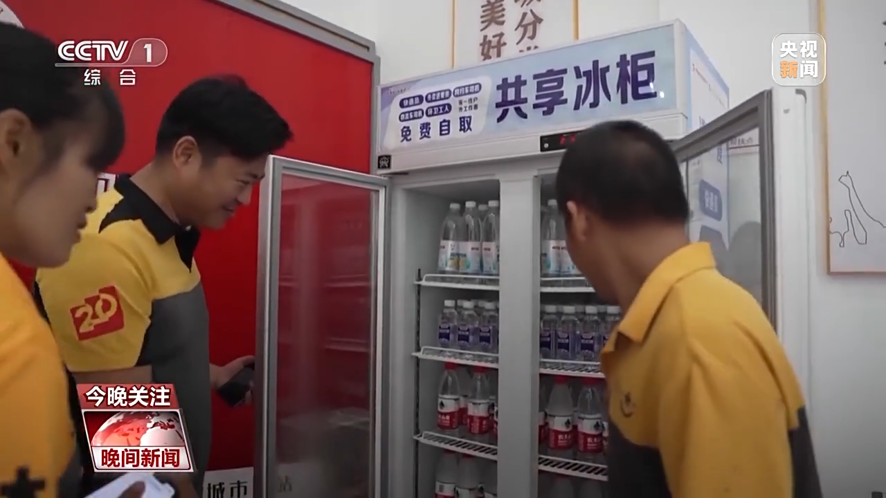 除了“爱心冰箱”以外,在浙江乐清,当地还投入使用了“爱心驿站”。里面配备了空调、冰箱、饮水机等各类便民服务设施,户外工作者能在这里喝上冰凉可口的矿泉水和绿豆汤,缓解暑气。