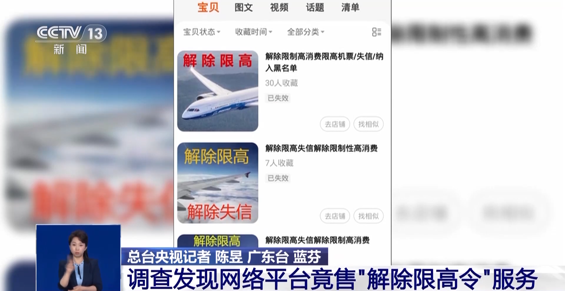 广州白云区人民法院执行局法官 万鹏:有部分商家确实以“解除限高”、帮助“限高”失信被执行人购买机票等关键词进行广告宣传,并且通过一些私下的手段绕过平台的监管,为这些被执行人购买机票。
