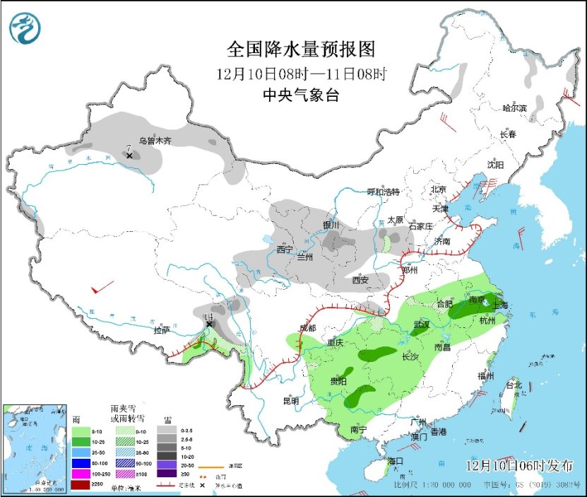 未来三天,多地还将出现雨雪天气,但整体强度较弱,预计新疆北部、西藏东部、西北地区东部、山西南部、河南西部、安徽大别山区、山东半岛等地部分地区有小到中雪或雨夹雪,其中今天,新疆天山地区、西藏东部局地有大雪或暴雪;南方大部地区将有小雨,局地中雨。