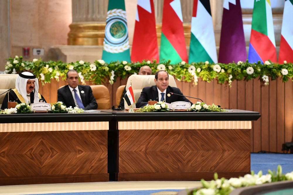 ↑ 3月4日,埃及总统塞西(前右)在埃及新行政首都召开的阿拉伯国家紧急峰会上讲话。