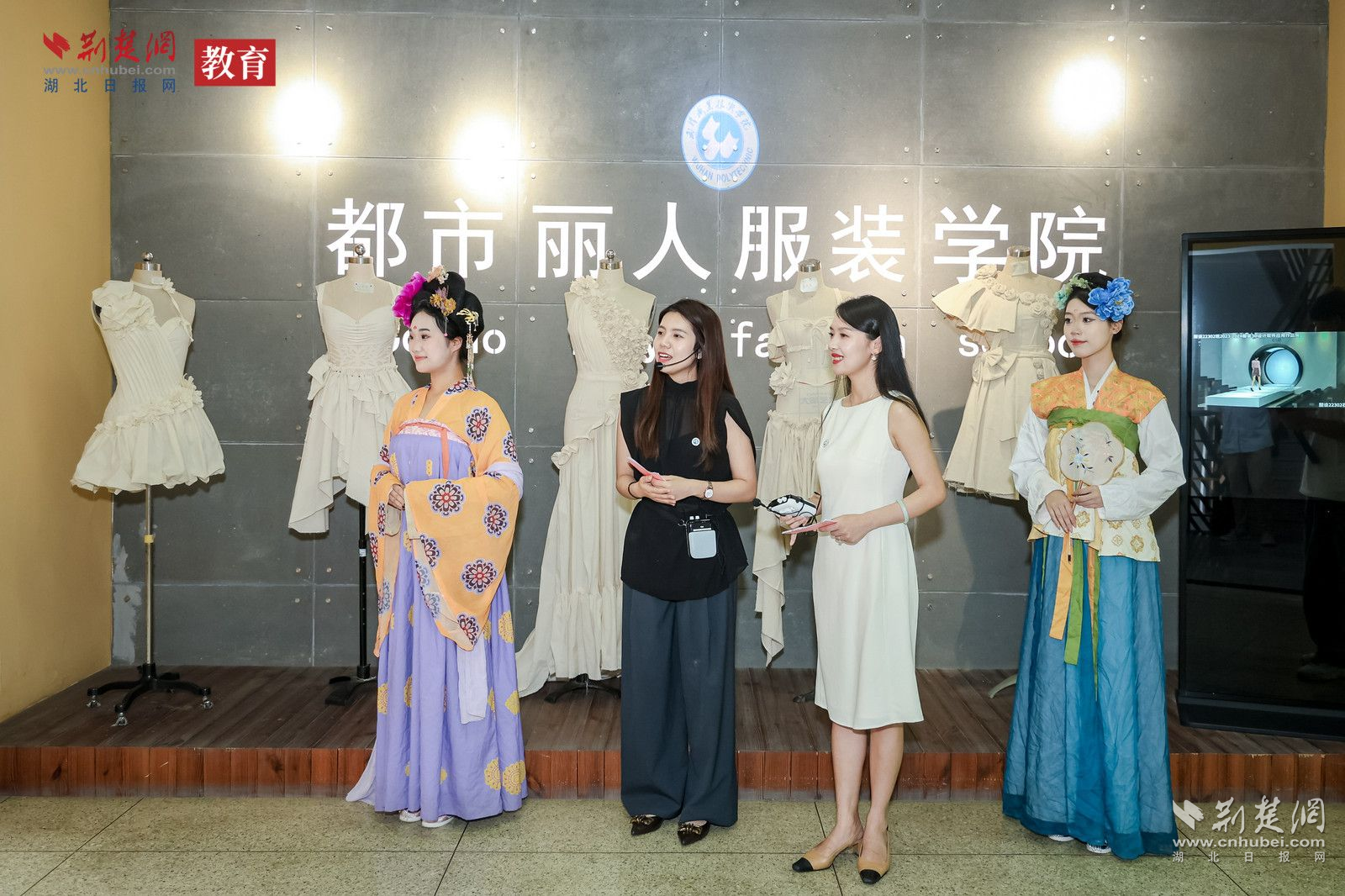 步入时尚与传媒学院,师生们充满创意的精美作品营造出浓厚的艺术与创新氛围。记者们了解到,学院紧密对接湖北文化创意产业与现代服务业升级需求,以时尚文化、环境文化、劳动文化、学术文化为载体,厚植楚文化传播与长江大保护理念。