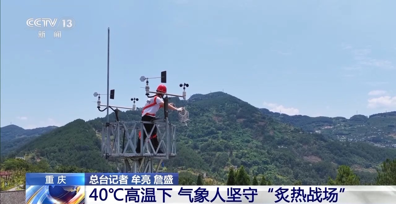 连日来,重庆持续发布高温红色预警,气温突破40℃。精准及时的预警,离不开海量可靠的气象观测数据。7月18日上午,重庆开州区城郊山顶的一处气象监测站数据出现中断,设备维护员们火速赶往现场,进行检修。