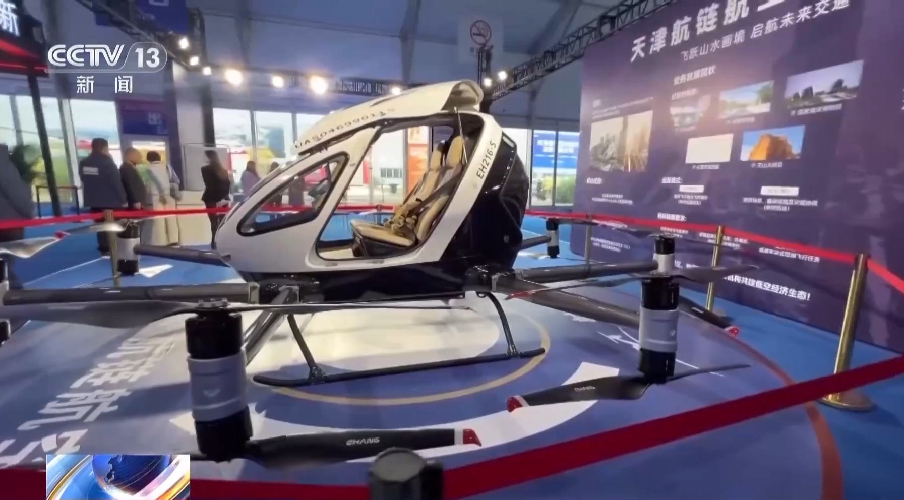 总台记者 罗欣欣:在本届直博会新设的低空经济馆内,有一款被喻为“空中出租车”的无人驾驶载人航空器,它可以通过全自动的“点对点”飞行,让乘客轻松飞抵目的地,实现高效出行。