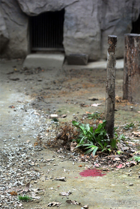 后经核实,该男子名叫杨金海,资阳安岳县人,1987年出生。事后,成都市动物园动管科的工作人员总结说,老虎不饿、不野,杨金海“跳对坑”是杨金海能够虎口脱险的三大原因。不饿是因为两只老虎在前日下午刚进食16斤肉;不野则是因为孟加拉白虎相对温顺,而且都是人工饲养的;而“跳对坑”则是因为它们的隔壁盘踞着几只更为彪悍的东北虎。现场血迹。