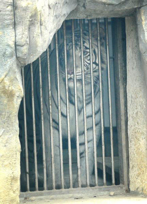 16日上午10时,成都市动物园,两只懒洋洋的老虎趴在狮虎苑中供游客观赏。5分钟后,随着墙外游客的一阵骚动,一个橙衣男子站上墙头,纵身跃进虎圈。面对两只老虎,男子不但不怕,反而连吼带叫、手舞足蹈与老虎对峙起来。闯入者手舞足蹈,还学着老虎大叫,其中一只母老虎反倒被吓得退到墙根。另一只老虎则在惊吓之余,扑向这名男子。在被拖行了几米之后,老虎总算松了口。这时,动物园的工作人员迅速赶往救援,喷水、铁棍隔离,甚至动用麻醉枪后,男子终于虎口脱险。