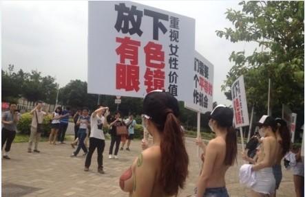 自称遭遇就业歧视 6女生裸上身校园举牌抗议遭质疑
