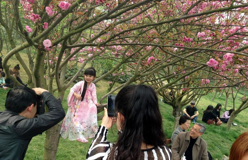 网友们在大呼:“心都要萌化了!”的同时,不少妈妈也PO出自己娃娃和樱花的合影,一时,网上呈“樱花小萝莉”、“樱花小正太”满天飞之势。