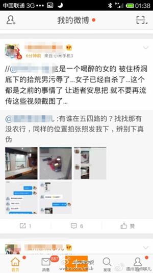 28日,网上流传多张图片称“醉酒女子被流浪汉强奸后自杀”引起网民热议。经公安机关查证,此事系7月27日凌晨发生在广西崇左市,该女子精神失常,犯罪嫌疑人钟某对强奸犯罪事实供认不讳。