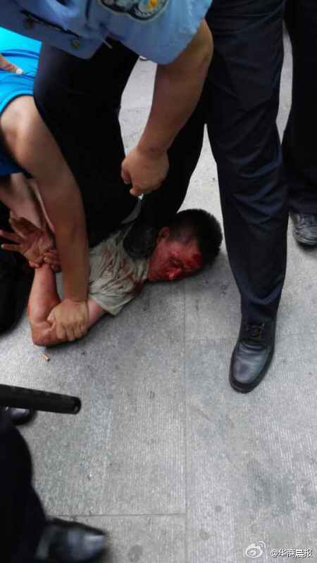 【最新消息】受伤的是一老人和一小伙,老人头部腰部受伤,小伙抢下了刀,手上受伤。警察鸣枪三声。