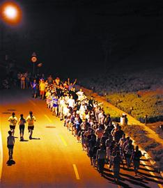 青岛:大妈弃广场舞改暴走 300余人喊号子