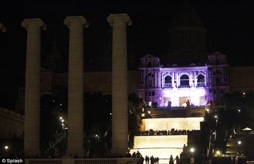 三天的婚礼,在巴塞罗那加泰罗尼亚艺术国家博物馆举办。直升机在上空盘旋摄像。新郎骑着白马出场。