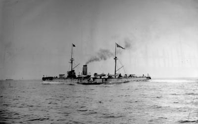 1894年9月17日,中日甲午战争黄海海战爆发,致远舰在海战中激战5小时弹尽且受重创后,管带邓世昌欲冲撞日舰吉野与之同归于尽,但被日舰集中火力击沉,同舰官兵246人殉职,邓与爱舰同沉,全舰仅7人获救。