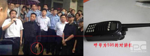 一、画面中执勤民警左手所持物品为县公安局统一配发的对讲机,对讲机呼号为595。