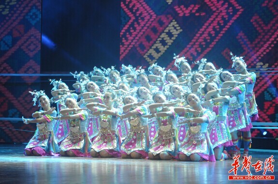 晚会从充满了浓郁民族特色的舞蹈《瑶乡情》中拉开序幕,溆浦县的这个节目展现的是湘西瑶族从母系社会流传下来的恋爱、婚礼风俗,他们爱得自由,爱得热烈,爱得疯狂。由怀化市鹤城区幼儿园带来的《喜鹊喳喳喳》以一群喜鹊为创作蓝本,巧妙结合了民间舞欢快热烈的特点,描绘出了一群活泼可爱、叽叽喳喳叫个不停的喜鹊们与大自然和谐相处的美好景象。