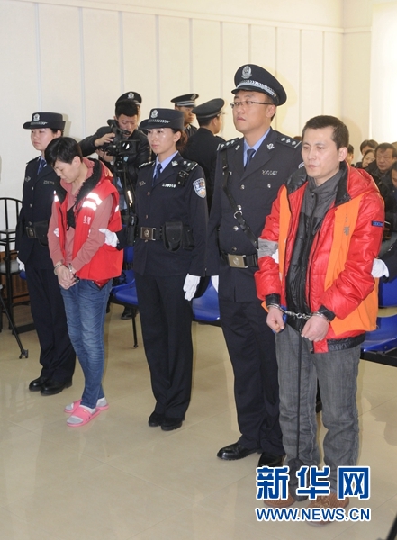 黑龙江“孕妇为夫猎艳杀人案”二审维持原判被告人白云江、谭蓓蓓在法庭上(11月24日摄)。 新华社记者 梁书斌 摄