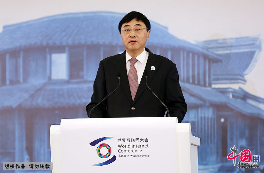 21日,首届世界互联网大会举行闭幕式,同时举行授予乌镇世界互联网大会永久会址仪式。图为工信部副部长尚冰致辞。中国网 董宁 摄影