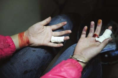 “我甚至提过,再试一年,如果我真的怀不上,‘克子’的话,我就甘心退出,可是他们还是不接受。”小云很悲伤,她只想男友能现身,对方家庭能出面给自己这边的父母一个解释。11月16日那天,当再次返回准公婆那里讨个说法的时候,期间由于双方言语过激,小云操起茶几上的一把剪刀意欲自杀,所幸被男友的父亲夺下。可在拉扯过程中,她双手的手指多处被刀口剪伤,血流不止。