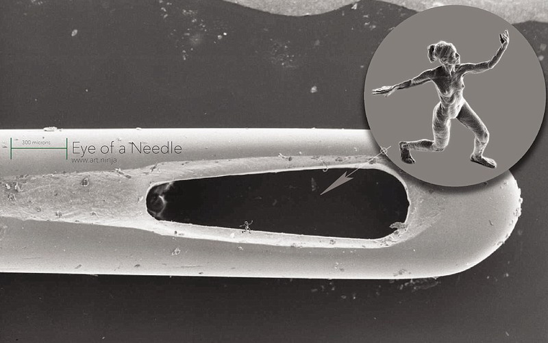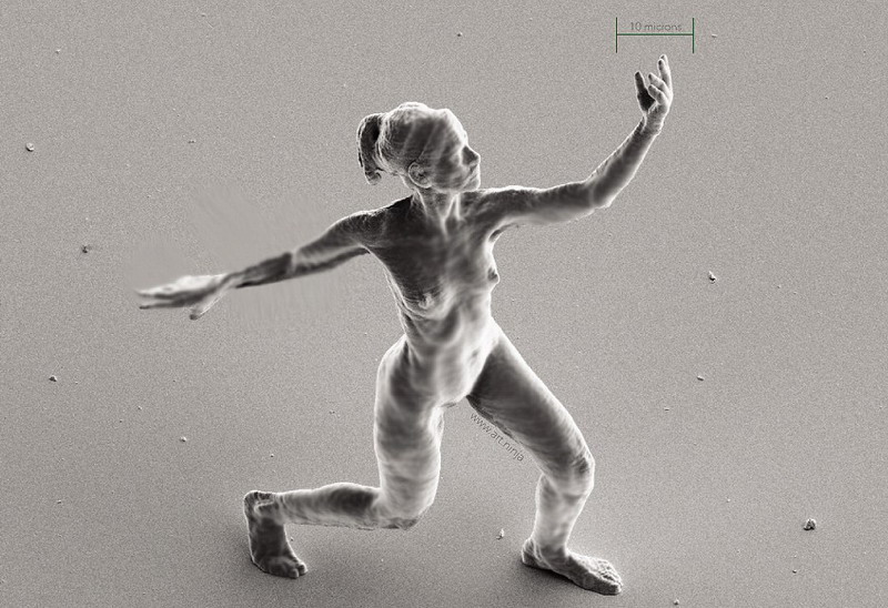 国际在线专稿:据英国《每日邮报》11月16日报道,英国艺术家乔恩迪·赫维茨(Jonty Hurwitz)利用突破性的3D打印技术,历时10个月创造出一系列大小仅相当于人类头发丝宽度一半的微雕人像。这些微雕可被放在蚂蚁头上,或放在缝衣针的针孔上。