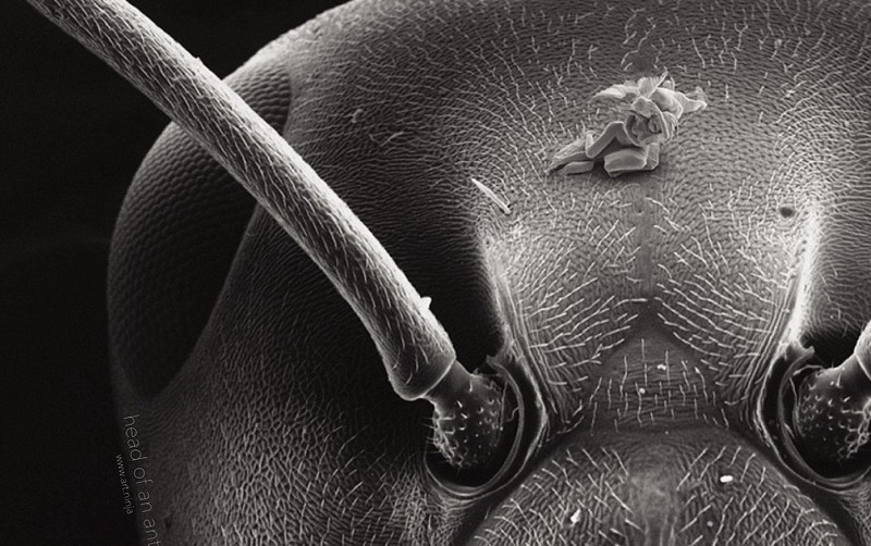 这张数字图像凸显了赫维茨纳米雕塑的大小,其下面是一只蚂蚁的头。(网页截图)