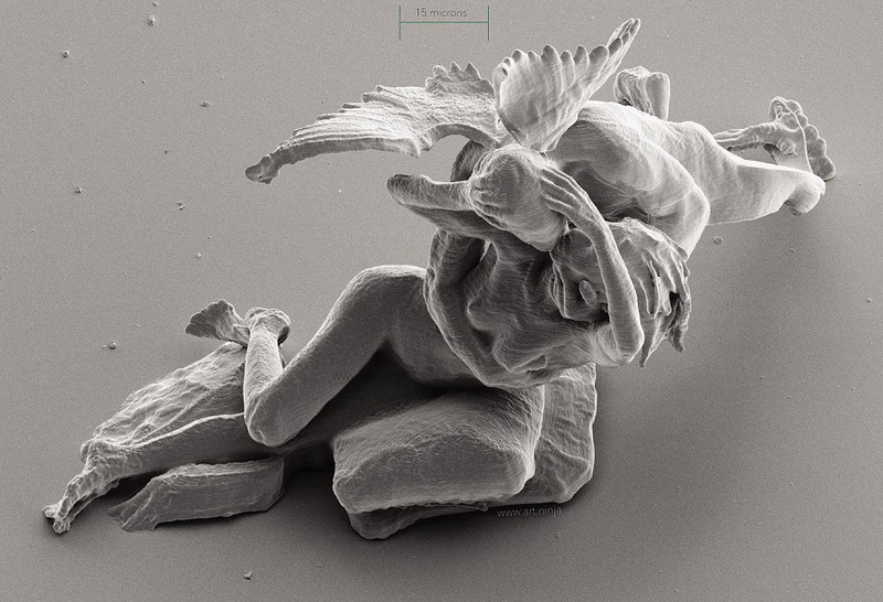 赫维茨的微雕称为“纳米雕塑”,共有7个,赫维茨用10个月时间设计、雕刻,最终在用于检查癌细胞的显微镜下呈现出这些夺目的艺术品。