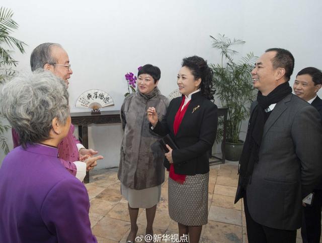 彭丽媛在澳门郑家大屋参观并欣赏“南音说唱”后,对南音说唱家区均祥说,您的嗓音很宏亮,音腔很婉转,能够感受到其中的韵味。南音是国家级非物质文化遗产,希望您多教一些年轻学生,传承中华文化。