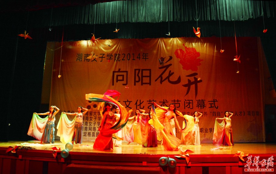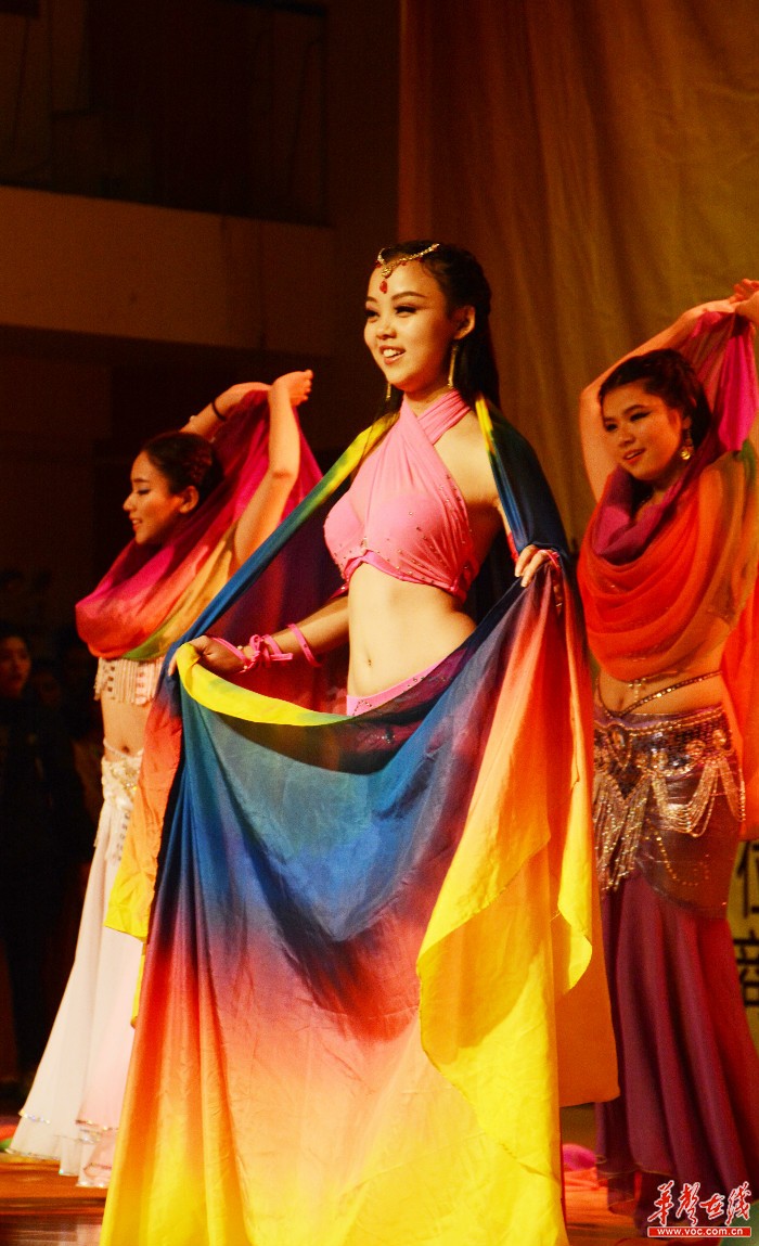 湖南女子学院“索菲亚东方之舞”社团带来的肚皮舞《远处的面纱》,舞者展示曼妙的舞姿。记者 李毅 摄