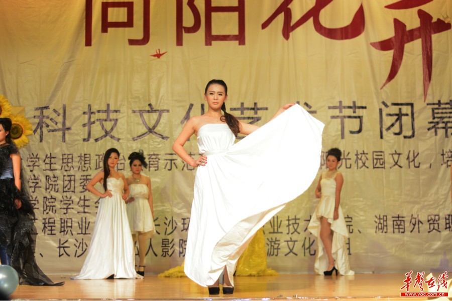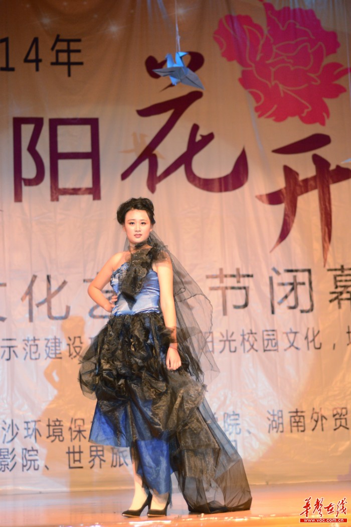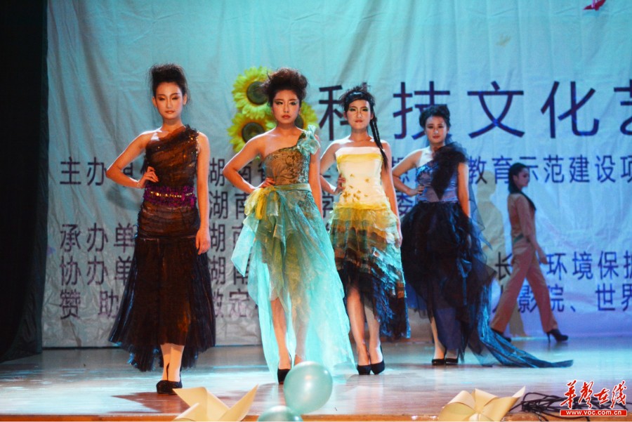model惊艳全场,图为艺术设计专业的女生们的服装走秀,其所着服装均为湖南女院学生自己设计制作。记者 唐俊 摄