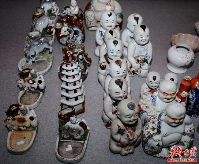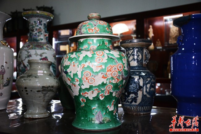 湖南文物总店工作人员卢伟介绍,此次廉价发售的古玩有300多件,包括清代、民国时期的各类青花、粉彩、各类瓷器、竹木铜银杂件,其中“喜鹊登梅将军罐”“祭红瓶”“铜官窑绿釉大壶”等都是收藏佳品。