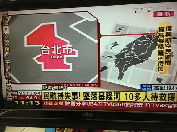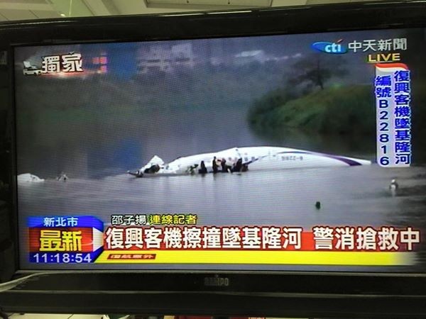 复兴航空客机坠毁基隆河,编号B-22816。(图/翻拍中天新闻)
