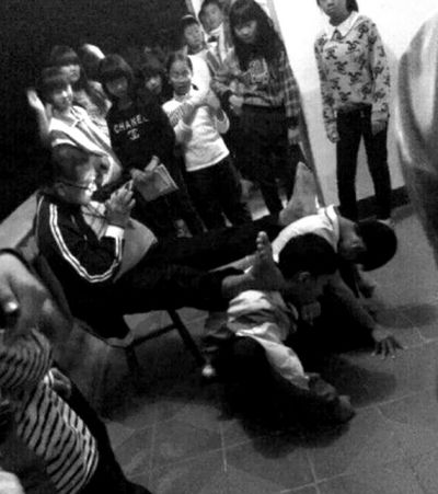 一组老师体罚学生的图片及简述,迅速在微博及微信转载、发酵。事件直指福建南安市金淘镇南光中学一名老师谢某,责罚两名学生蹲坐地上,并将双脚分别踩踏在学生的肩上。当晚,南安市教育局发现这一情况后,局领导高度重视,要求校方核实情况。
