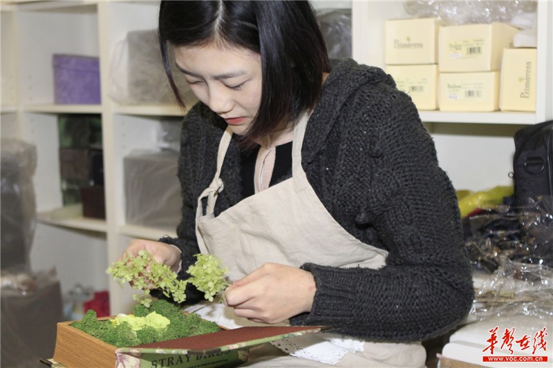 店内栩栩如生的“永生花”需要小心轻放,万黎妮每天都要花时间打理它们。
