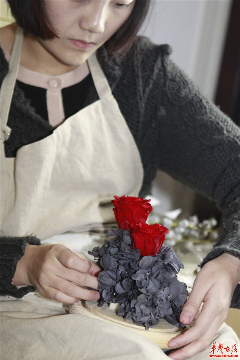 针对湖南花店同质竞争激烈的状况,她推出了“私人定制·故事订花”的概念。“追求者可通过照片、心仪人相关资料打造专属对方的花艺,恋爱期的人可根据两个的交往故事定制礼物。”在她看来,花朵是一种具有神奇魔力的语言。